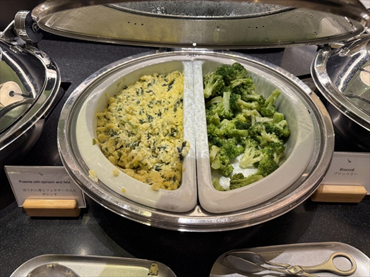 左はほうれん草とフェタチーズ入りポレンタ(プレンたとは・・?)、右はブロッコリー!