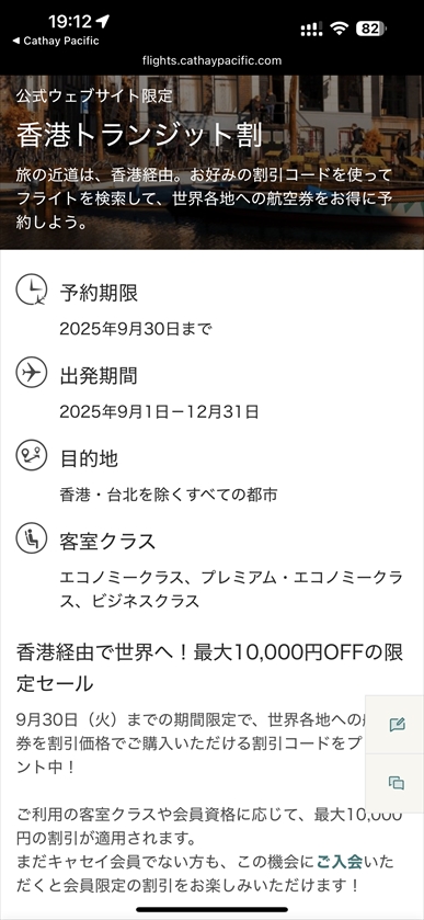 ちょうど同じタイミングでトランジット割で1万円引きのキャンペーンも始まりまして
