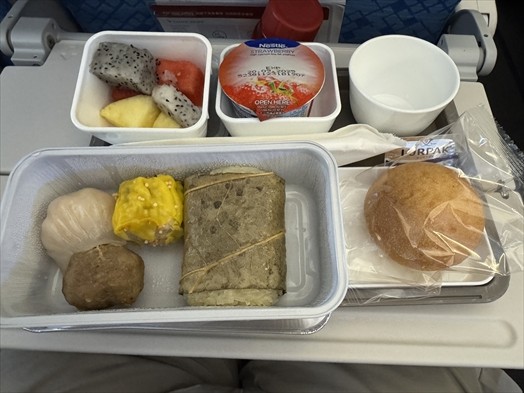 配給は朝食メニューで点心とスクランブルエッグだったので点心をチョイス。