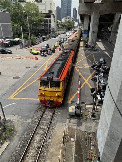 マッカサン駅下の踏切がちょうど閉まって国鉄がやってきました。