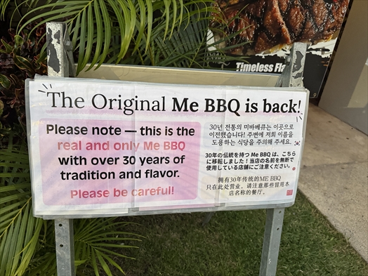 ちなみに元々入っていた場所には元々やっていた元祖とは別でほぼ同じ名義の"Me Bar-B-Que"という店があるので要注意や!(上の写真でも無断で名前使ってる店には注意!って書いてますね)