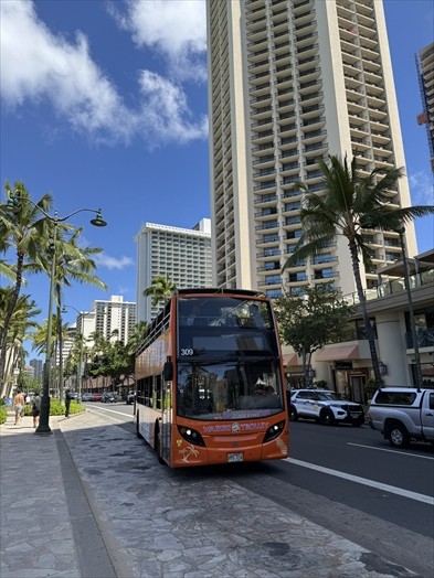トロリーに乗ってまずはアラモアナまで向かいます。