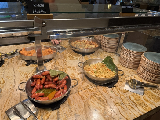 キムチソーセージにフライドヌードル。この辺は日替わりの品。
