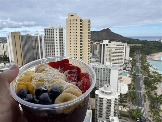 で、部屋に戻ってダイヤモンドヘッドを拝みながらアサイーボウルを食しましょう!