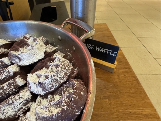 パンケーキステーションは今日はウベワッフル。