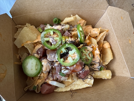 ビールのつまみに最適なアヒとワンタンの皮をナチョスチップに見立てた一品。