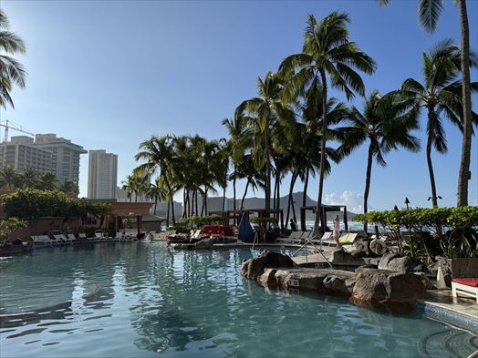 シェラトンのプール越しにもダイヤモンドヘッドを拝む。