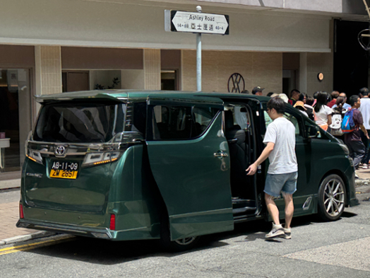 ホテルに戻る途中、緑色のアルファードを発見。