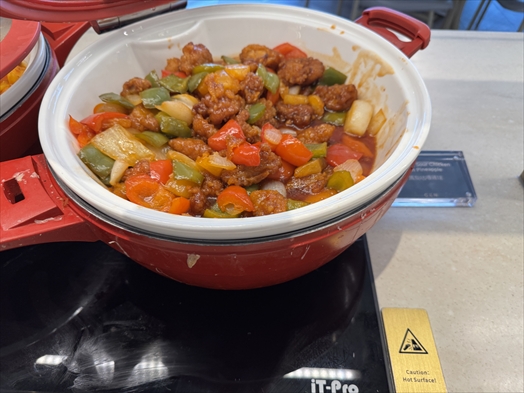 鍋の中身は昨日の昼食べたポークチョップ乗せドリア(トマト味)みたいなやつでした。