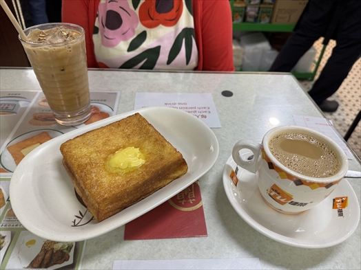香港式フレンチトースト、ミルクティー、コーヒーを。