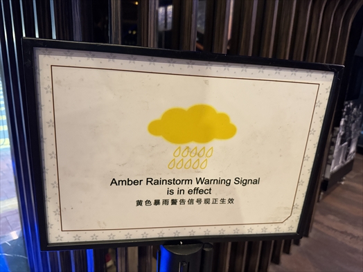 で、ホテルに戻ってきたらフロントロビーに今日は大雨警報が出てるという案内が・・