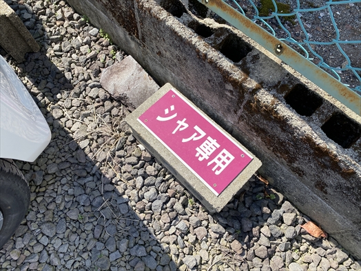 駐車場にクルマを駐めると「シャア専用」の表記が。