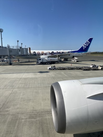 定刻10分前に着陸するもスポットが空かず機内待機。