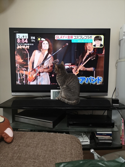 テレビっ子のお嬢は朝からスッキリに釘付け。