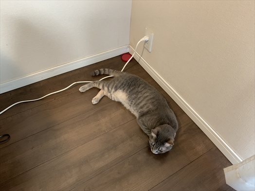 お嬢は床に直寝でまったり。