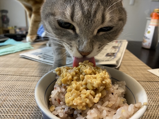 父ちゃんが朝ごはんに納豆食べてるで~!とまっすぐ茶碗に向かうのかと思いきや