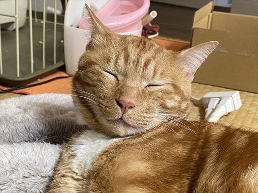 そしていつもの定位置(いつも母ちゃんの横で寝てる)へ移動。