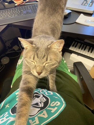 自分でペロペロでいない頭の上を毛づくろいしてあげます。