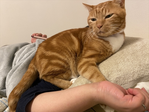 母ちゃんの真横に陣取って寛いでますが、母ちゃん曰くものすごい邪魔とのこと。