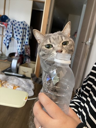 お嬢は母ちゃんの飲んでる水に興味津々で匂いをクンガクンガと嗅いでますがお水だから無臭ですよ。