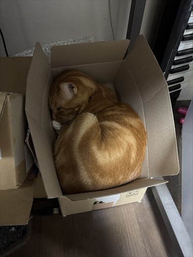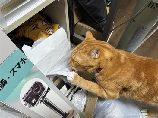 なので穴に落ちるのがイヤなので机の下に転がっている箱をキャンプ地とし始めました。