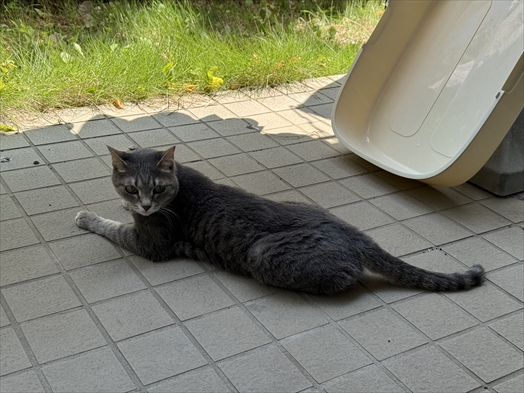 お嬢は暑い中外に出てシャバの空気を楽しんでおります。