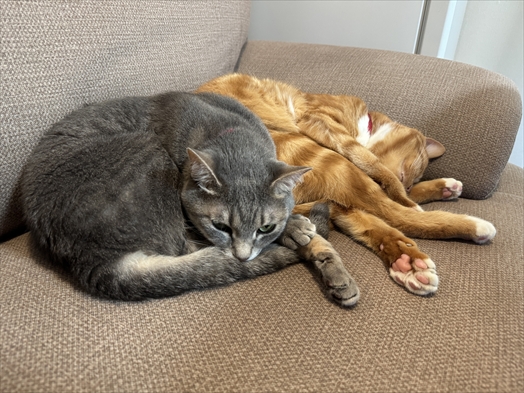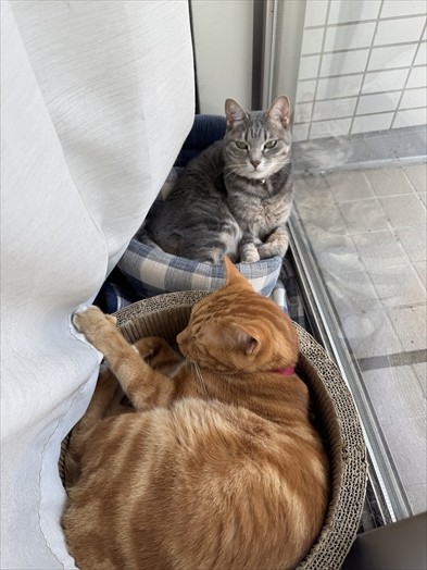でもやっぱり窓際は暑かったようでソファの上で仲良くくつろぐ2人。