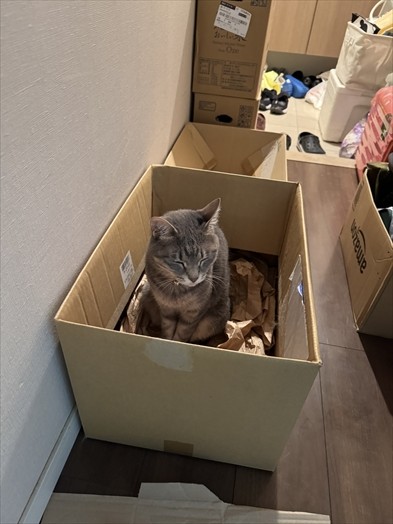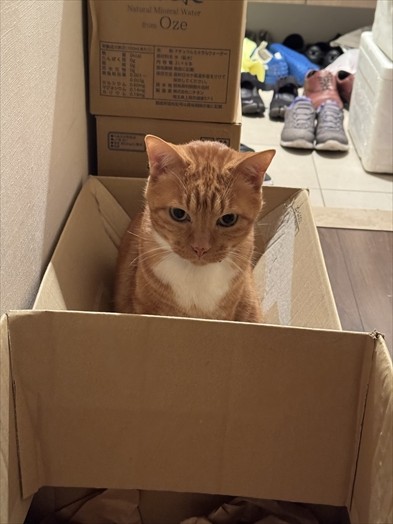 続いてインザ段ボールで捨て猫ゴッコに興じるネコズ。