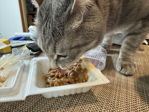 デールちゃんは人様の納豆をつまみ食い。