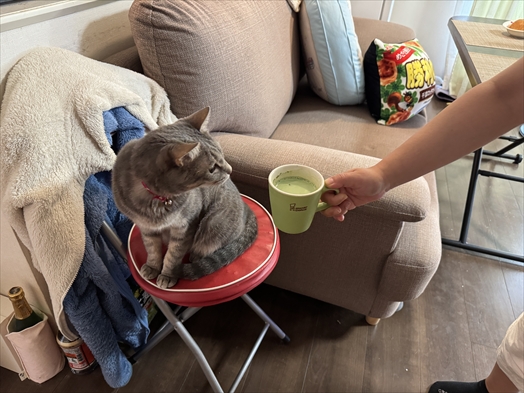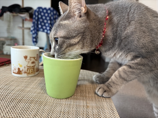 先週のネコだよりTheMOVIEでUPした青汁牛乳をお飲みになるお嬢さまから。