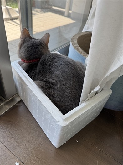 お嬢は河岸を変えてインザ発泡スチロールボックス。
