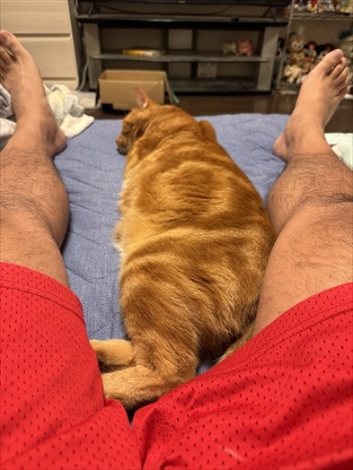 父ちゃんの股の下は丁度いい感じの居心地っぽいです。