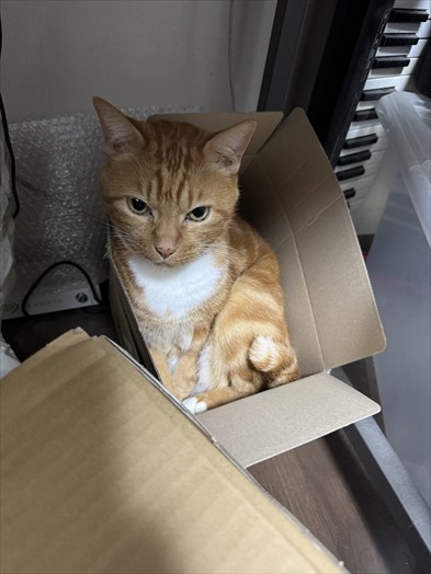 チッ太郎は父ちゃんの部屋に転がっている段ボールで引きこもりをご堪能。