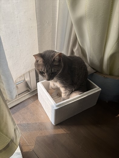 お嬢さまはインザボックスで日向ぼっこをご堪能。