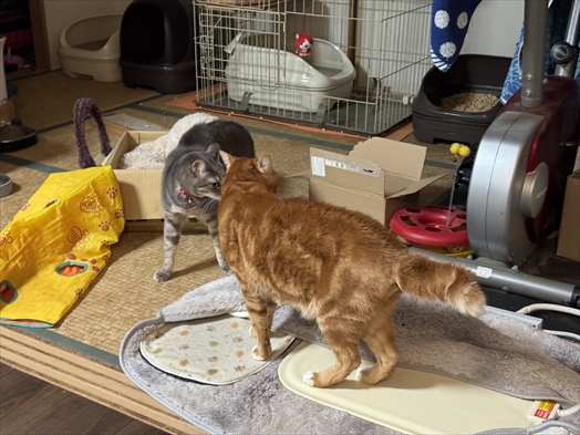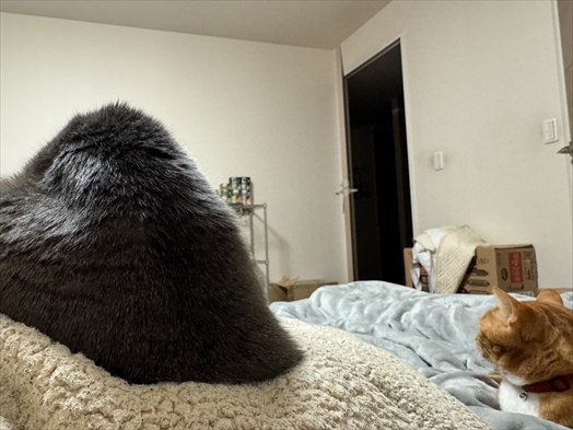 ちょっと大きい音出してしまったらびっくりして飛び上がって尻尾をふくらませる2人。