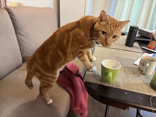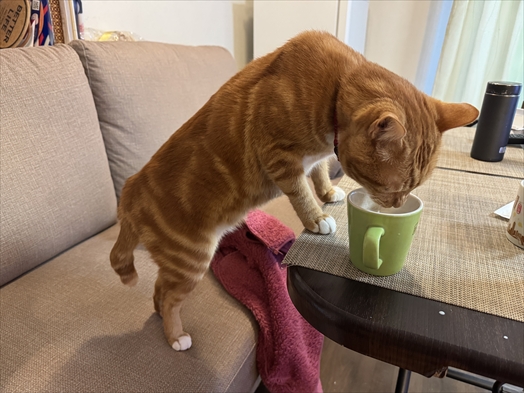 テーブルに前足ついてペロペロする姿がかわいいかわいい。