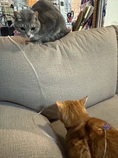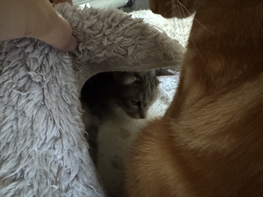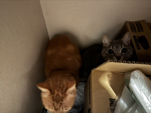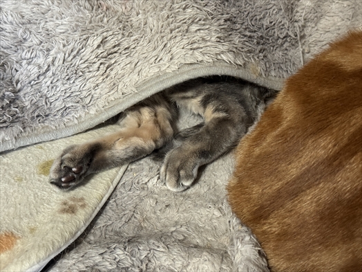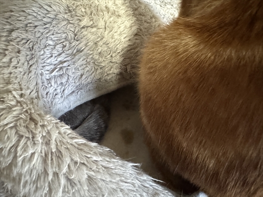 なんでかな~と思ってたところ朝ホットカーペットの電源を入れ忘れたままだったので寒くて2人くっついていただけでした。すまんすまん。