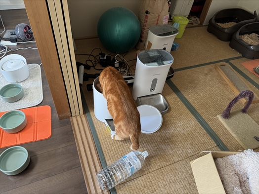 重しにしてた2Lのペットボトルが落とされ、カリカリマシーンのフタもハッキングされオールユーキャンイート状態に!