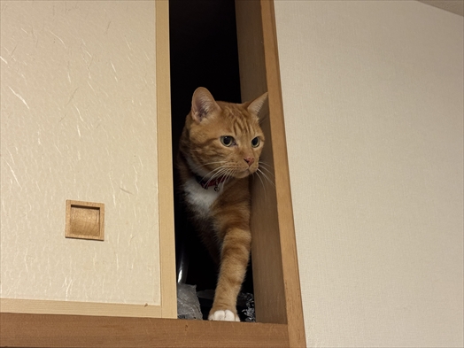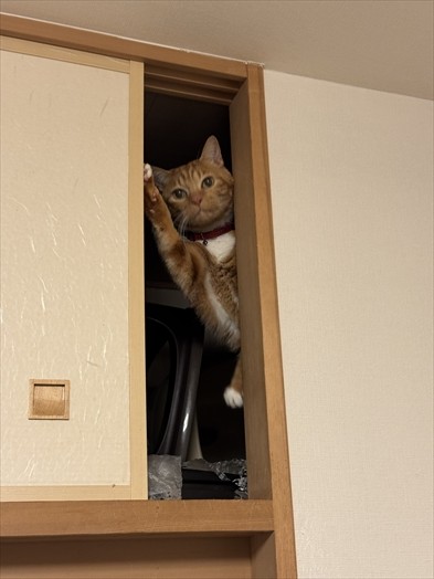 珍しく天袋に登ってるチッさん。