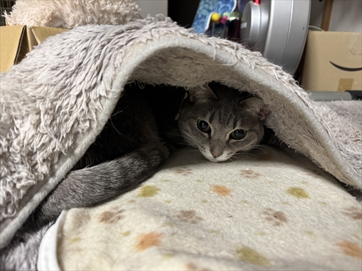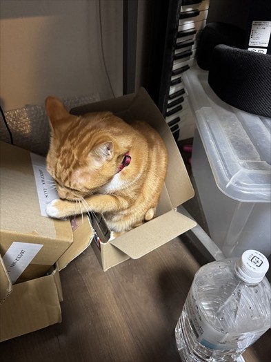 と思いきや段ボールの中に隠れたりと落ち着きがない子。