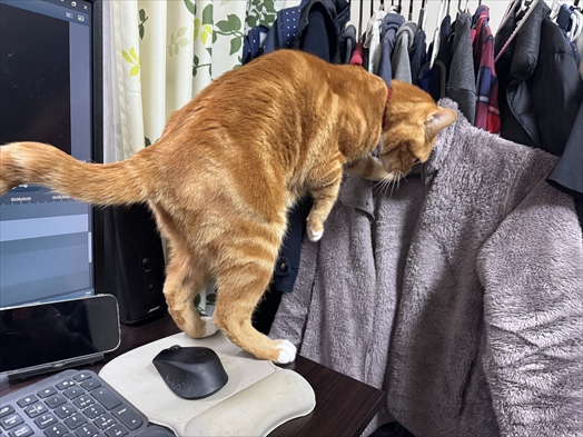 急に母ちゃんのフリースの臭いを嗅ぎ始める。