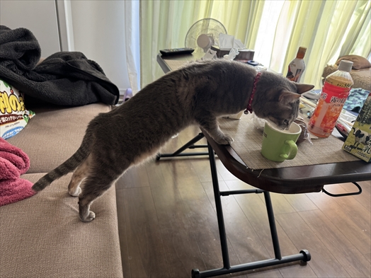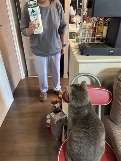 朝母ちゃんが牛乳飲もうとすると欲しそうな目をしてアピールするのがかわいいかわいい。