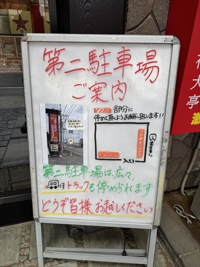 と思いきや、後日店から2分ほど離れた場所に広い第2駐車場も出来たので大きい車でも楽に停めれるようになりましたよ。