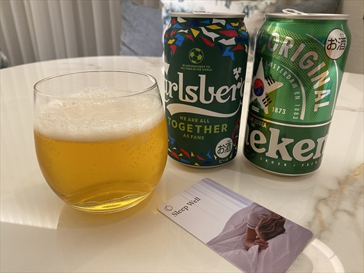 カールスバーグとハイネケンを調達して帰ったみたい。